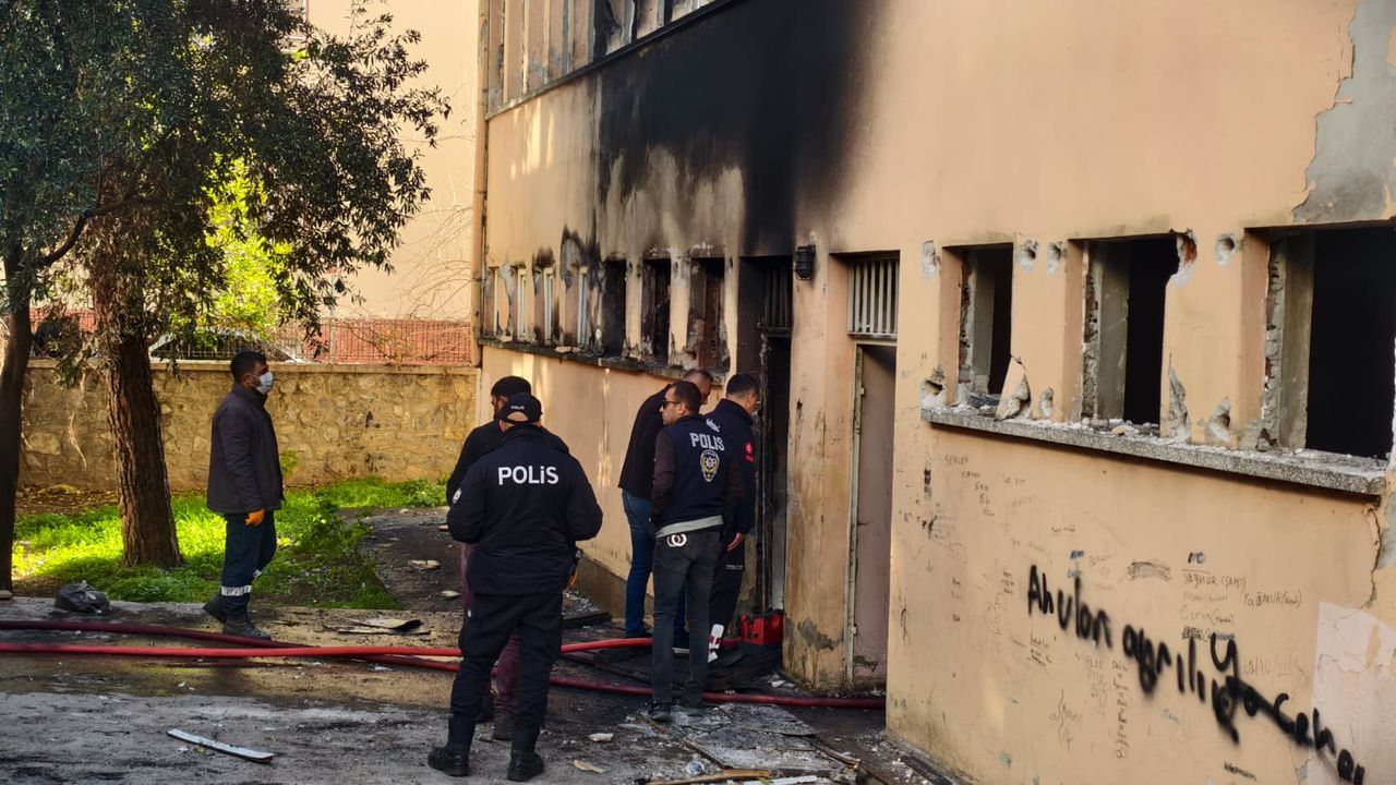 Eski kütüphane binasında yangın paniği: Kazan kesimi sırasında alev aldı