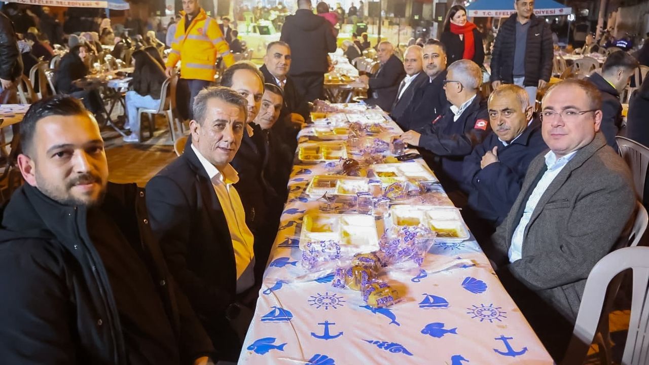 Ramazan ayının birlik, paylaşma ve kardeşlik ruhu, Efeler’de kurulan iftar sofralarıyla yaşatılmaya devam ediyor. Efeler Belediyesi tarafından düzenlenen iftar programında, Belediye Başkanı Anıl Yetişkin’in ev sahipliğinde Işıklı Mahallesi sakinleri aynı sofrada buluştu.